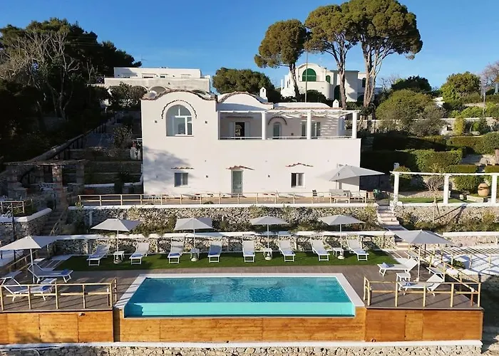 Oferując przechowalnię bagażu, Elegant Villa In Anacapri Infinity Pool & Design dogodnie leży mniej niż 11 min piechotą od słynnych miejsc kultu religijnego, takich jak Kościół San Michele. Willa oferuje parking oraz taras z widokiem na morze.